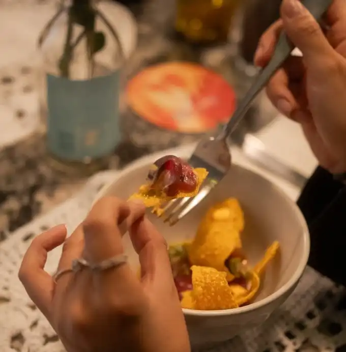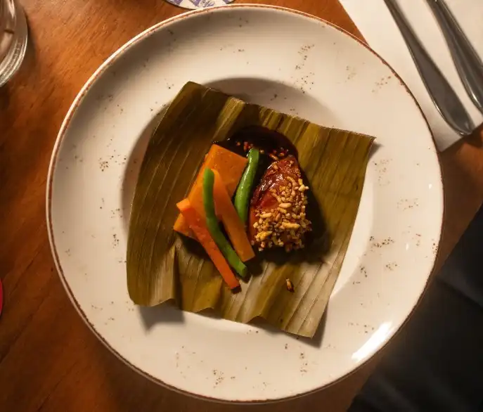 La propuesta gastronómica incluyó una cena de “seis tiempos”, elaborada por los chefs Kenneth Ruiz y Paula Castañeda, chef corporativa y propietaria del grupo Mumis. Cada plato combinó técnicas contemporáneas, insumos peruanos y sabores tropicales, generando una fusión entre el Pacífico Sur y los Andes.