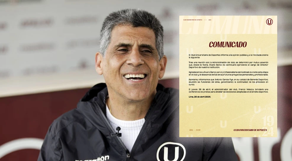 Universitario de Deportes confirmó la salida de Álvaro Barco como director deportivo, en medio de una crisis de resultados en la Liga 1 2026 y a pocos días de un partido clave por la fase de grupos de la Copa Libertadores. La decisión se tomó tras una reunión con la administración del club, que optó por cerrar su ciclo de mutuo acuerdo.