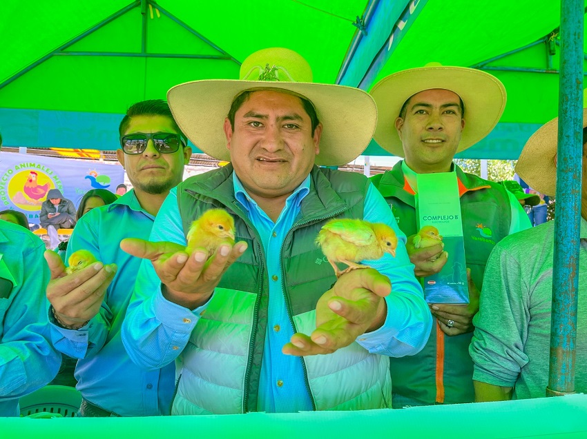 Cada beneficiario recibió 40 pollitos de la raza Hy-Line Brown, conocida por su alta capacidad de postura, así como comederos, bebederos, alimento balanceado, cascarilla de arroz, focos y nordex. Esta dotación busca proporcionar las condiciones iniciales adecuadas para una crianza eficiente y rentable.